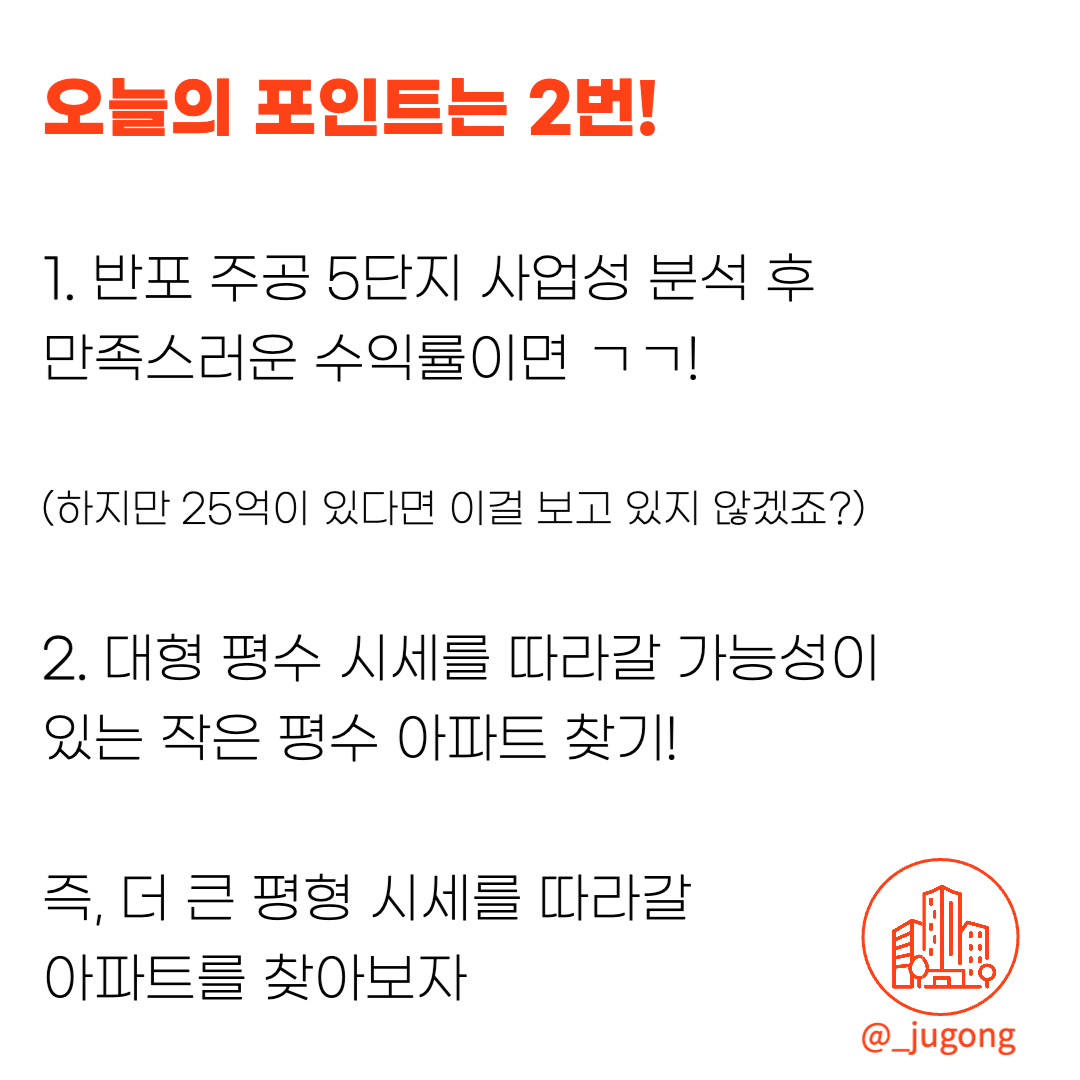 오늘의 핵심 포인트를 알려드릴게요. 잠실 주공 5단지의 사업성을 분석해 보세요. 만약 수익률이 만족스럽다면 투자를 고려해보세요! (물론, 25억이 있다면 다른 투자 방안도 고려하시겠죠?) 큰 평수의 시세에 근접할 가능성이 있는 작은 평수의 아파트를 찾아보세요. 이렇게 하면 더 큰 평형 아파트의 시세를 따라잡을 수 있어요.